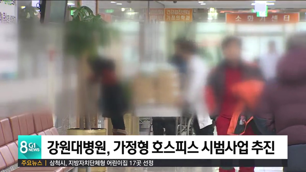강원대학교병원 강원지역암센터는 가정에서 호스피스 병동의 서비스를 제공받을 수 있는 가정형 호스피스 시범사업을 추진합니다.