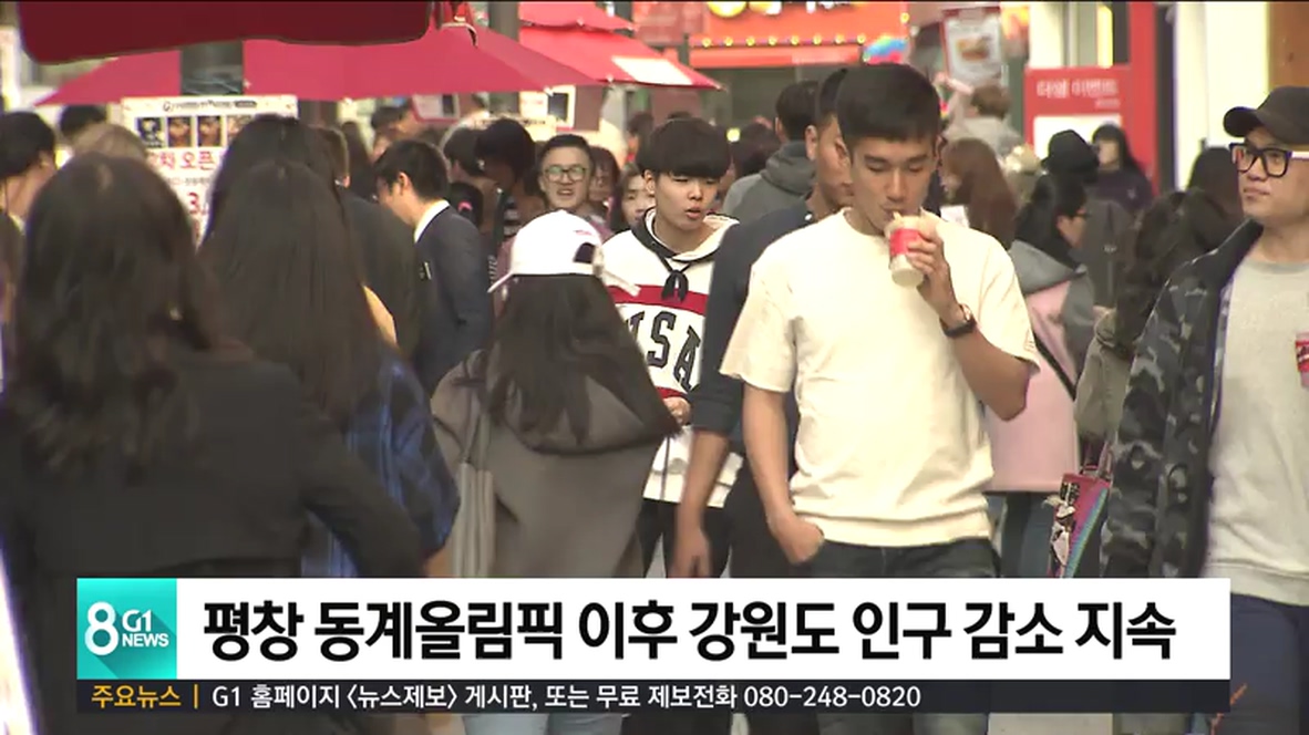 평창 동계올림픽 이후 강원도 인구 감소 지속