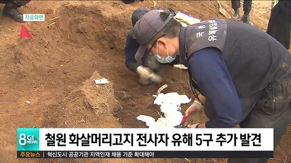 남북 공동 유해발굴을 위해 지뢰 제거작업이 진행되고 있는 철원 비무장지대 화살머리고지에서 6.25 전쟁 전사자 유해 5구가 추가로 발견됐습니다.