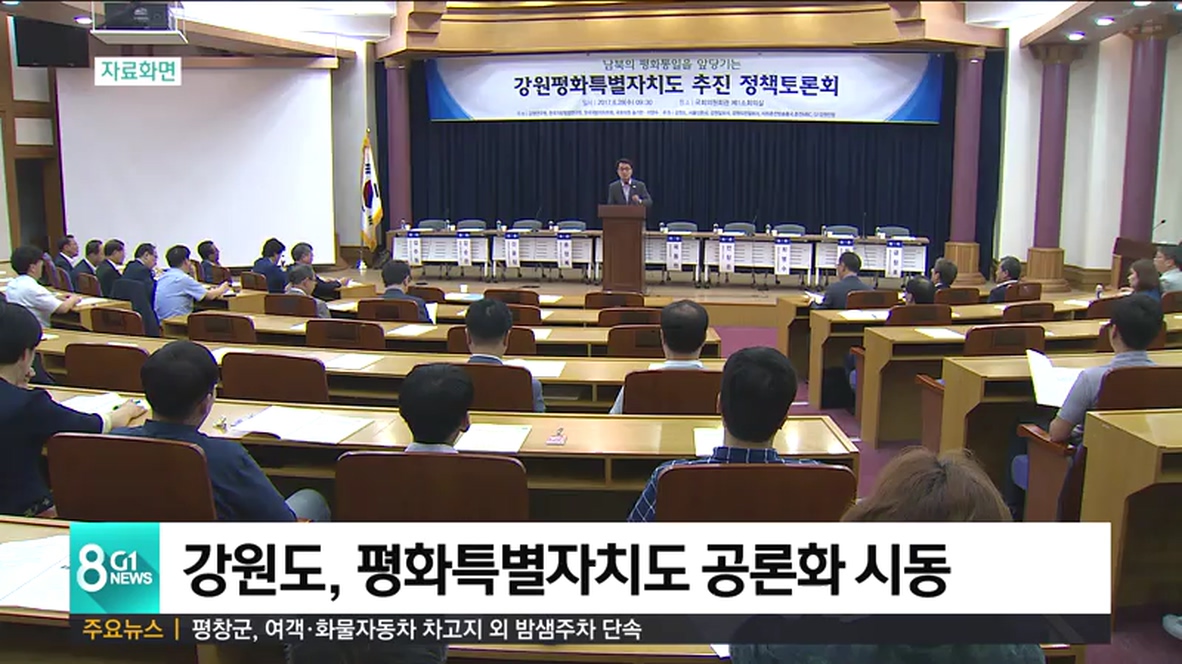 강원도는 오는 23일 춘천 베어스관광호텔에서 '남북 평화시대 강원도의 미래, 왜 강원평화특별자치도인가'를 주제로, 영서북부권 주민과 사회단체 관계자들을 대상으로 순회 설명회를 개최합니다.