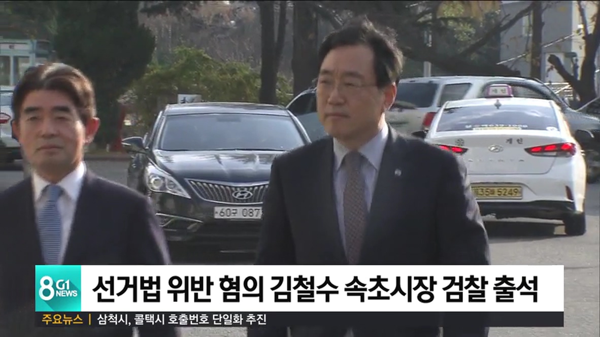 공직선거법과 지방공무원법 위반 혐의를 받고 있는 김철수 속초시장이 검찰 조사를 받기 위해 오늘 춘천지검 속초지청에 출석했습니다.