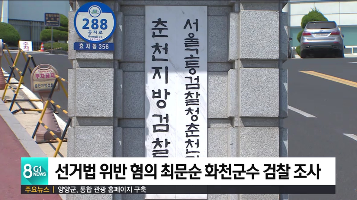 공직선거법 위반 혐의를 받고 있는 최문순 화천군수가 검찰에 소환돼 조사를 받고 있습니다.