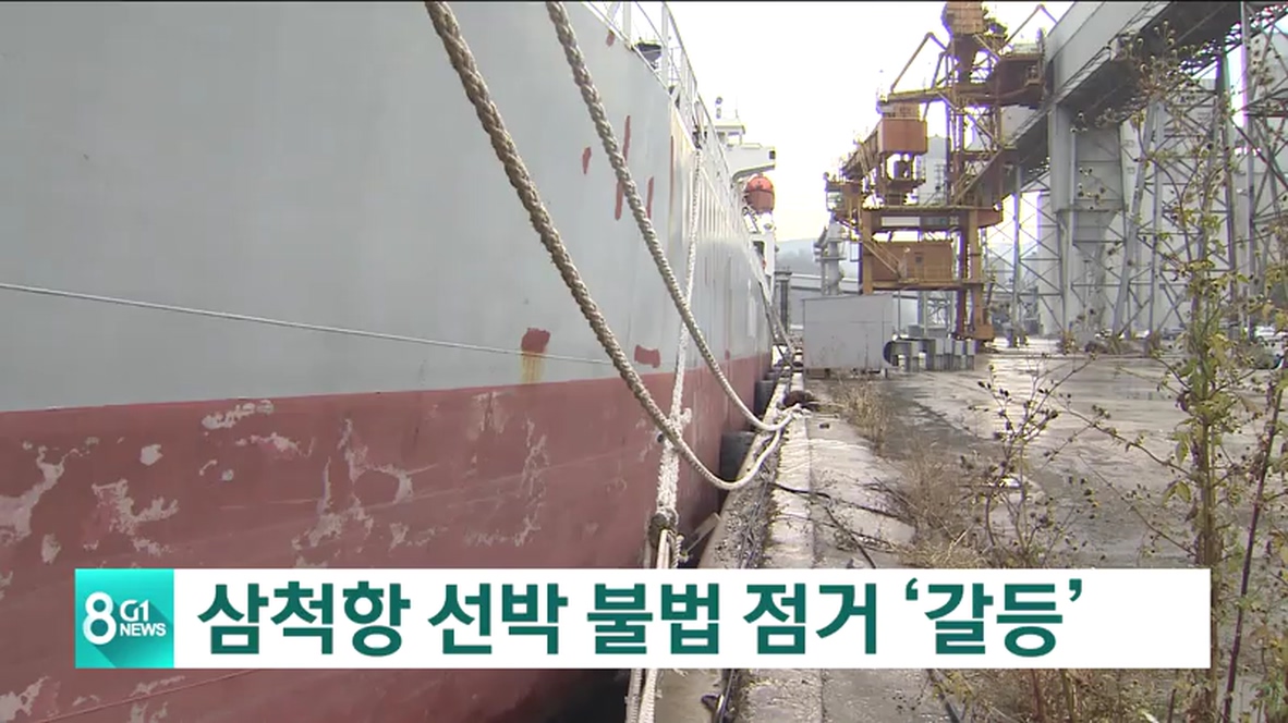 삼척항에 4천7백톤급 시멘트 운반 전용선이 8개월째 같은 자리에 불법 정박하고 있습니다. 다른 선박들이 제대로 항구를 이용하지 못해 피해를 호소하고 있는데 뾰족한 해결책이 없어 문제입니다.