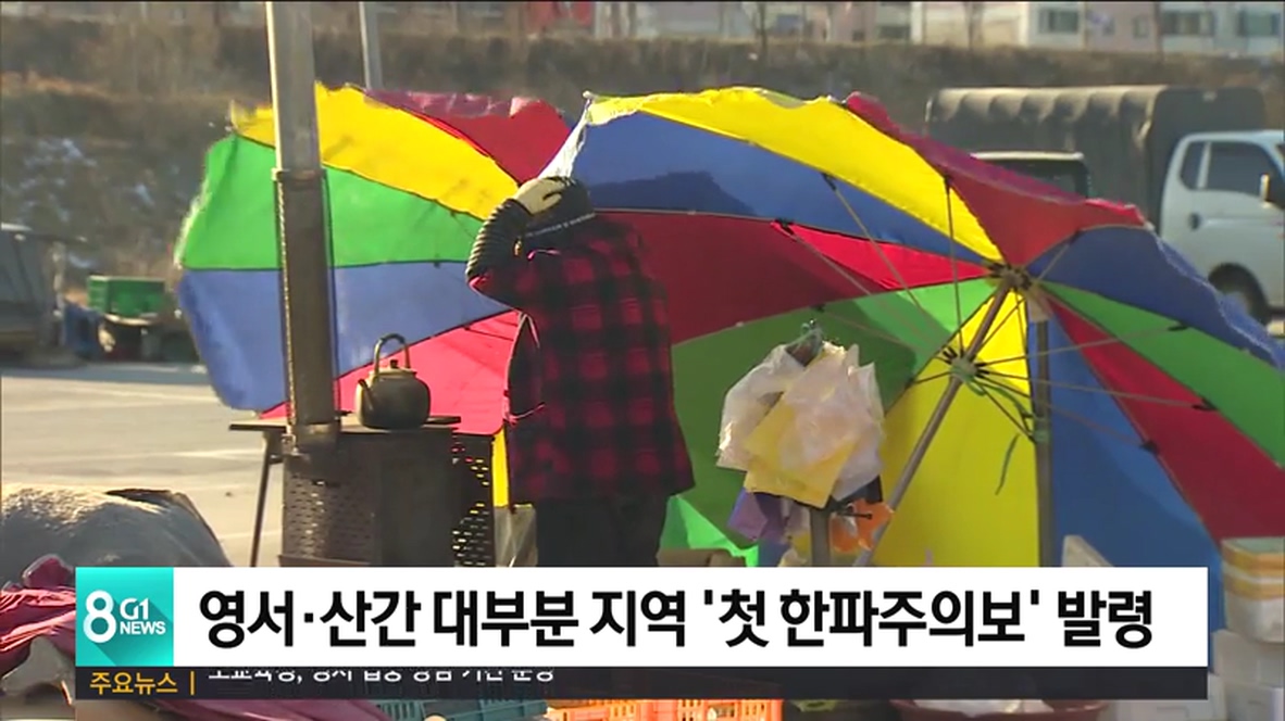 현재 동해안 지역을 제외한 도내 대부분 시군에 올겨울 들어 첫 한파주의보가 발효된 가운데, 밤사이 기온이 큰 폭으로 떨어지겠습니다.