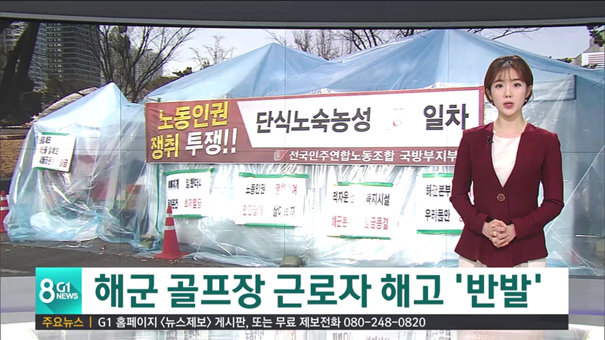해군이 운영하고 있는 골프장의 근로자들이 최근 국방부 앞에서 며칠째 단식 농성을 이어가고 있습니다.