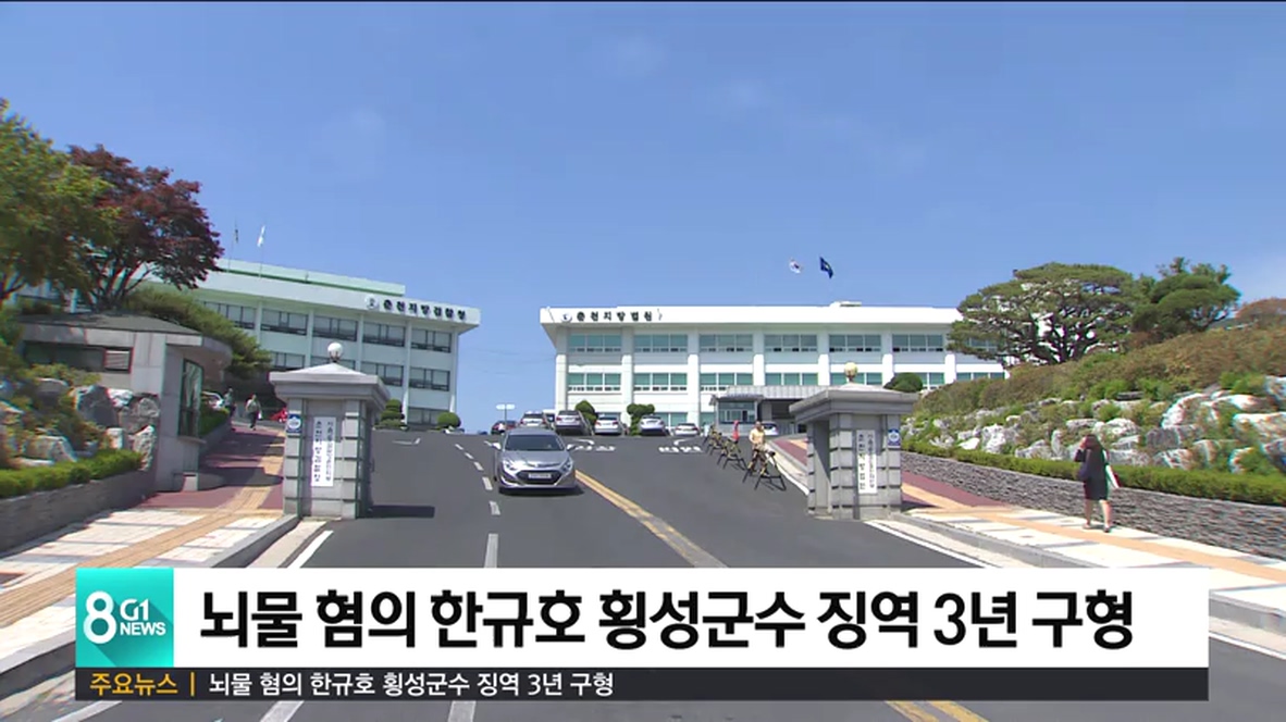 어제 서울고법 춘천재판부 형사1부 심리로 열린 한규호 군수의 항소심 결심 공판에서 검찰은 징역 3년과 추징금 699만원을 구형하고, 뇌물수수와 공무상 비밀누설 혐의로 기소된 횡성군 공무원 51살 이 모 씨에 대해서도 징역 1년6개월과 추징금 589만원을 구형했습니다.