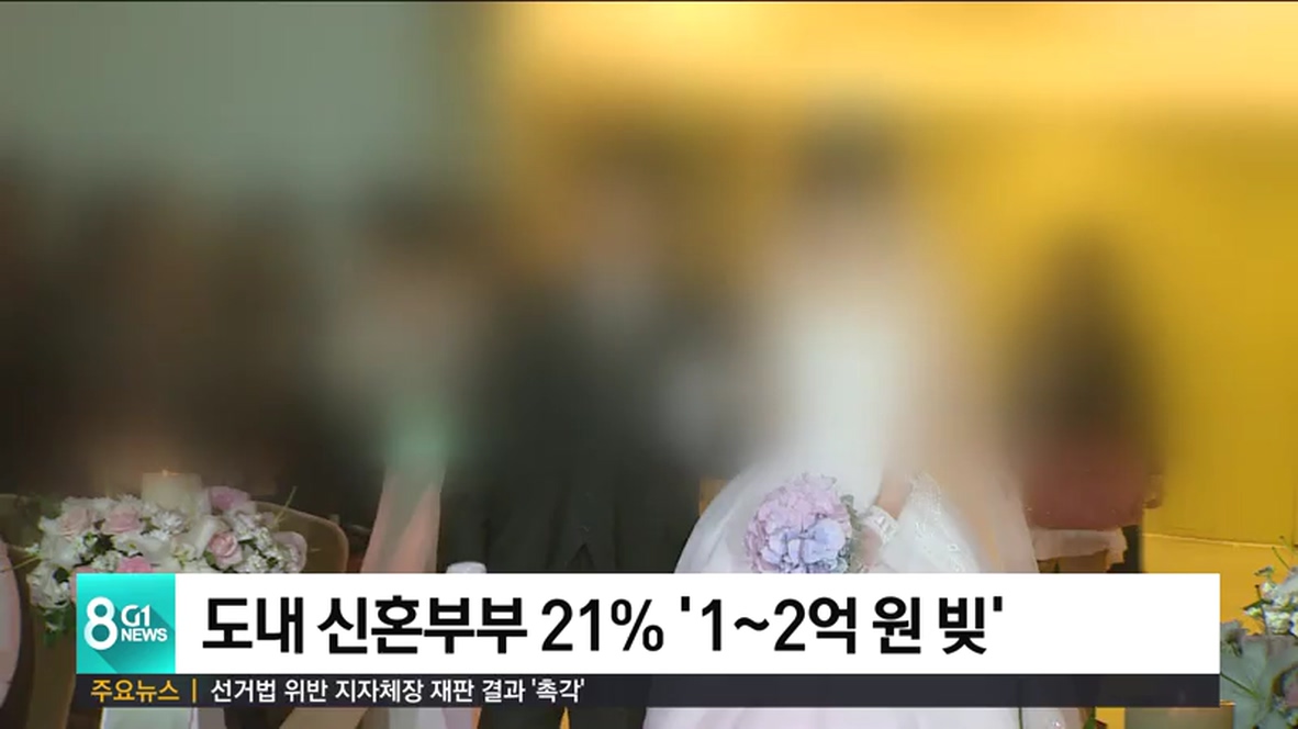 도내 신혼부부 5쌍 가운데 1쌍이 1억원 정도의 빚을 안고 있는 것으로 나타났습니다.