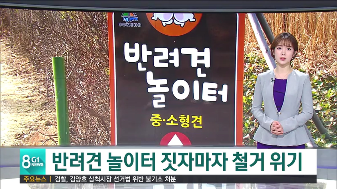 속초시가 민선 7기 시장 공약사업으로 추진한 반려견 놀이터가 짓자마자 철거될 위기에 처했습니다.