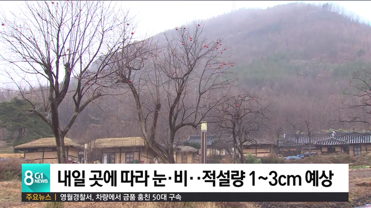내일 아침 최저기온은 영서지역이 영하 7도에서 영하 5도, 영동지역은 0도에서 영상 2도의 분포를 보이겠고,