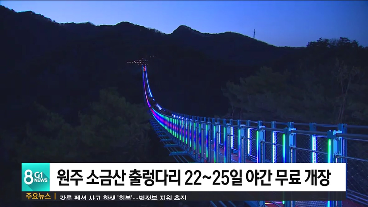 원주시가 연말을 맞아 오늘(22일)부터 나흘동안 소금산 출렁다리를 무료로 야간 개장합니다.