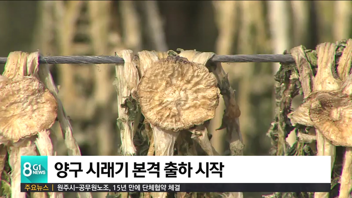 양구군은 지난 8월 파종해 10월부터 건조를 시작한 시래기가 최근 본격 출하가 시작돼 양구명품관과 대형마트 인터넷 등에서 판매되고 있다고 밝혔습니다.