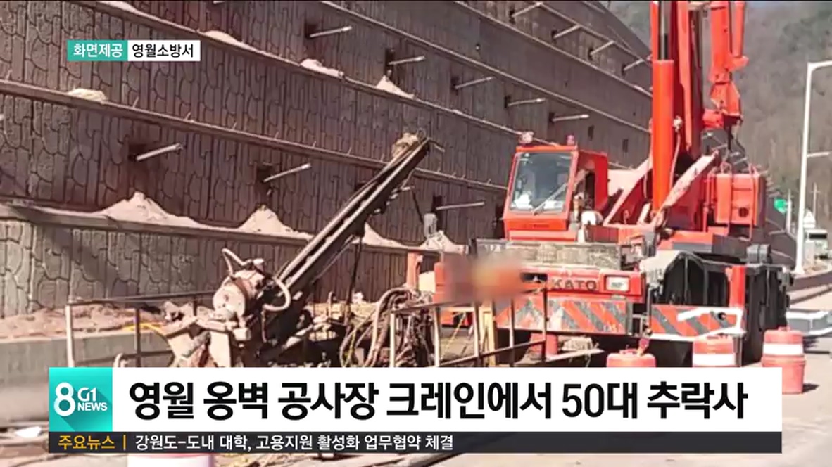 영월 옹벽 공사장 크레인에서 추락..50대 숨져