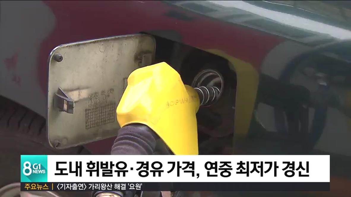 도내 휘발유와 경유값이 올들어 가장 저렴한 시세를 형성하고 있는 것으로 나타났습니다.
