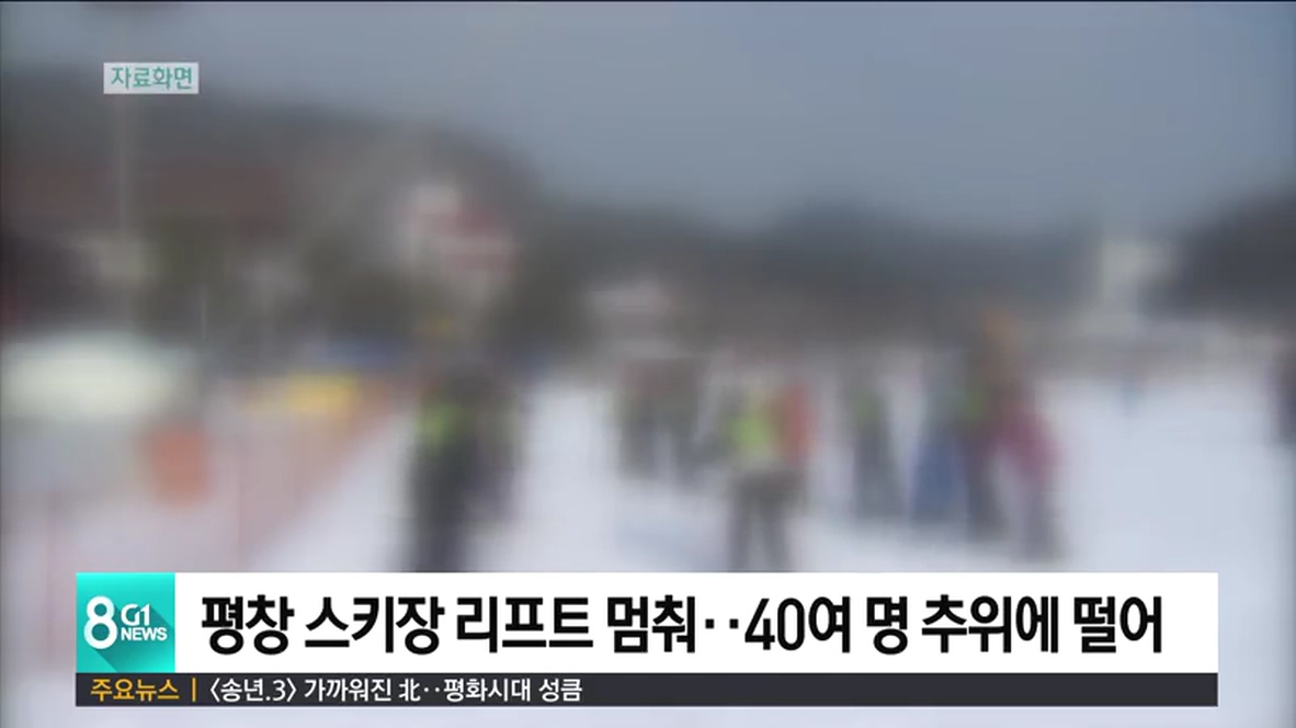 오늘 오후 4시 15분쯤 평창군 대관령면의 한 스키 리조트에서 리프트가 멈춰, 스키어 40여 명이 40분 가량 4m 높이 리프트 위에서 강추위 속에 큰 불편을 겪었습니다.