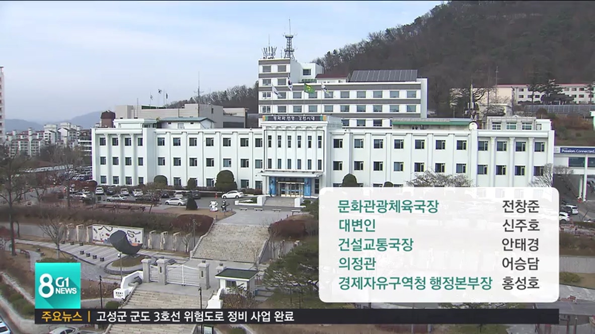 신임 대변인에는 신주호 평화지역 문화과장, 건설교통국장에 안태경 방재과장, 의정관에 어승담 보건환경연구원 총무과장, 동해안권경제자유구역청 행정본부장에 홍성호 자원개발과장을 각각 승진 임용했습니다.