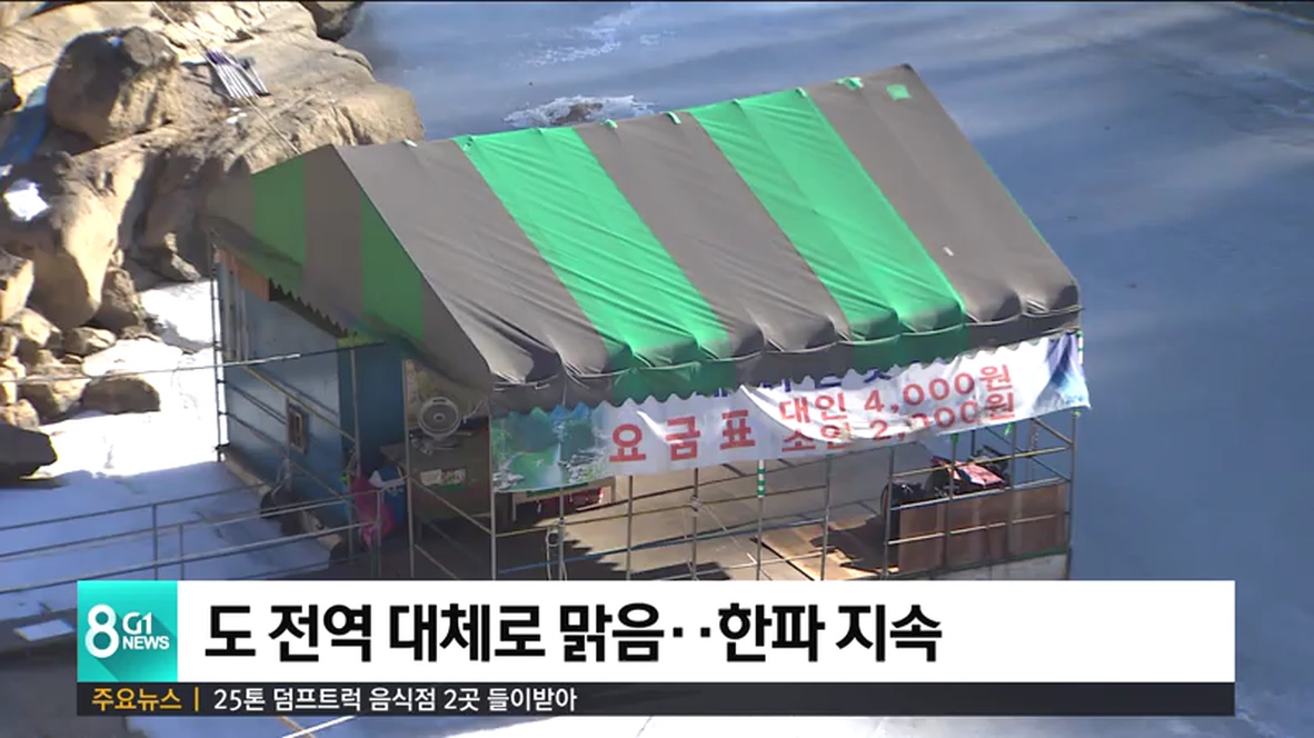 내일 강원도는 대체로 맑은 가운데, 영서지역은 아침 최저기온 영하 12도를 밑도는 한파가 이어지겠습니다.