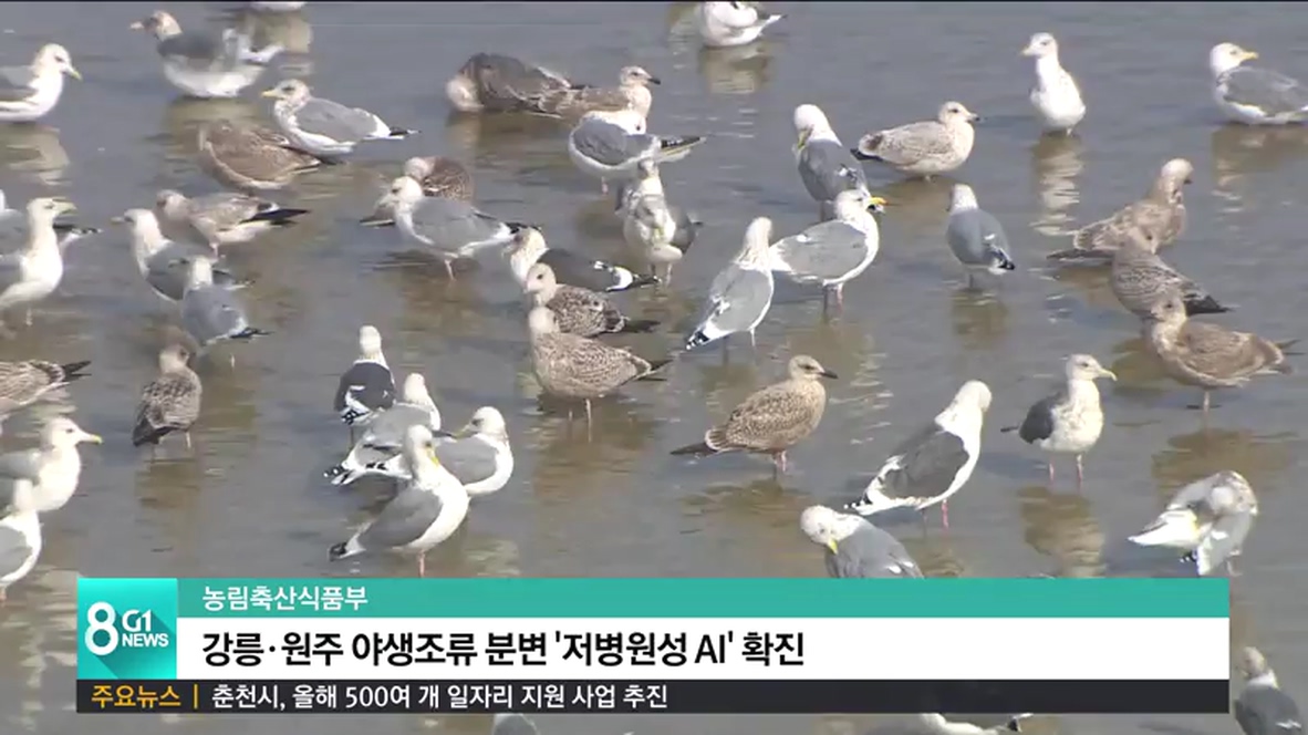 농림축산식품부는 지난해 12월 24일 강릉시 남대천과 원주시 원주천에서 채취한 야생 조류 분변의 AI 항원을 정밀 검사한 결과, 모두 저병원성으로 확인됐다고 밝혔습니다.