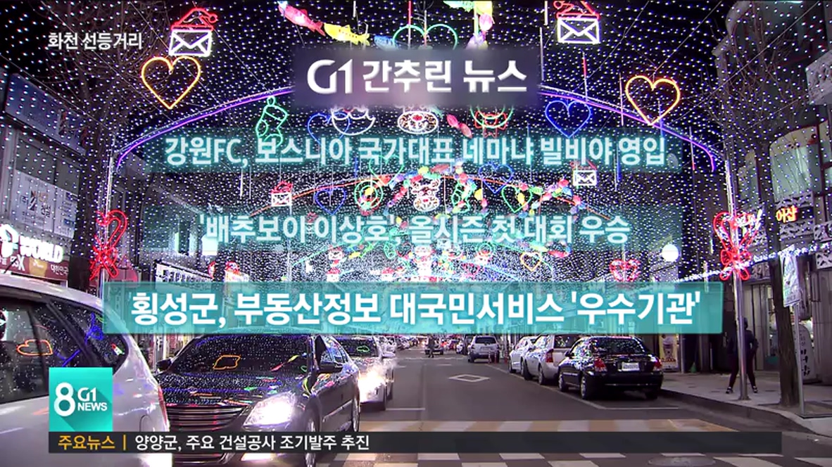 횡성군은 국토교통부에서 전국 광역과 기초단체를 대상으로 한 '2018년도 부동산정보 대국민서비스 부문' 평가에서 우수기관으로 선정됐습니다.