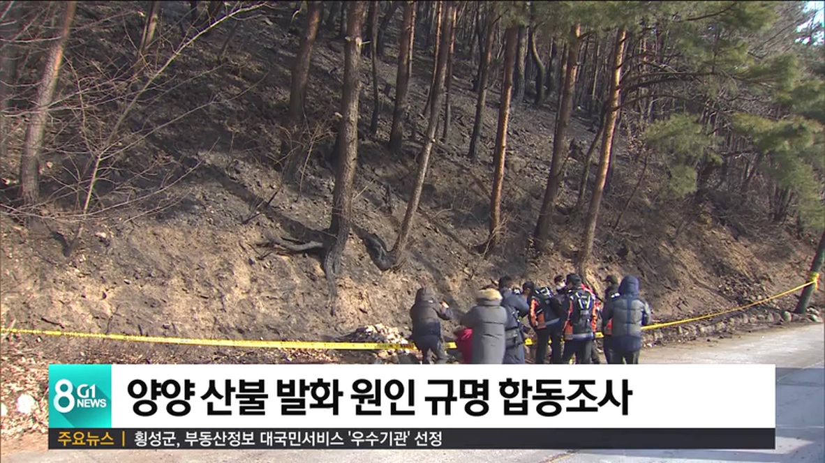 경찰과 소방, 산림청, 양양군 등은 오늘 오전 산불발화지인 양양군 서면 송천리 야산에서 산불 원인 규명을 위한 현장 감식과 주변 CCTV분석을 실시했습니다.