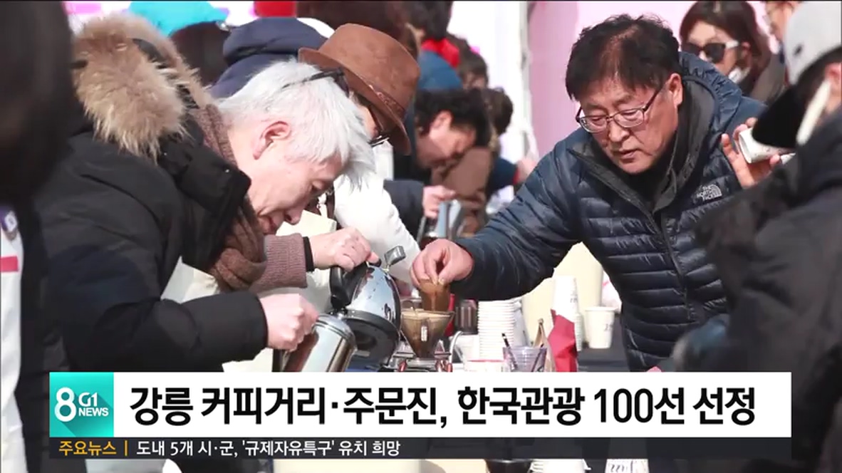 강릉시에 따르면, 커피거리는 지난 2015년부터 3회 연속 한국관광 100선에 선정됐으며, 주문진은 올해 처음으로 선정됐습니다.