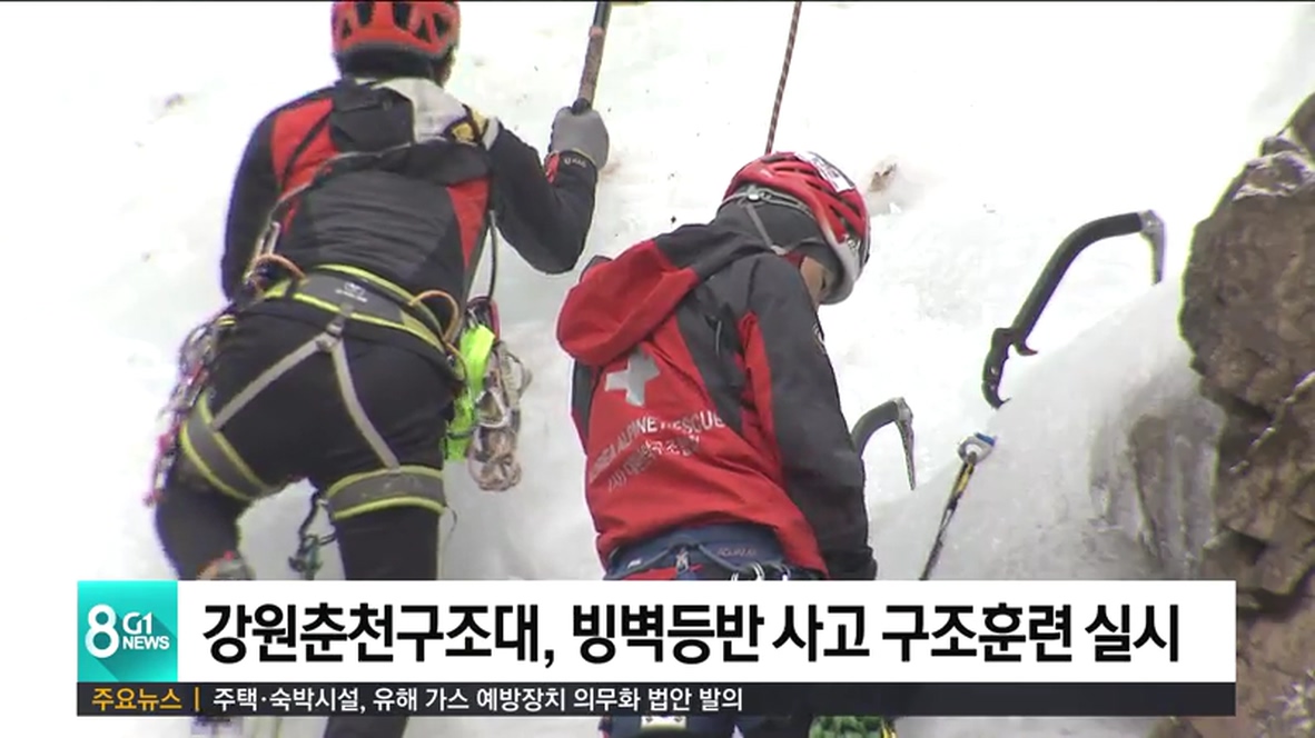 겨울철 산악 빙벽 안전사고에 대비한 인명구조 훈련이 오늘, 춘천시 강촌 구곡폭포에서 열렸습니다.