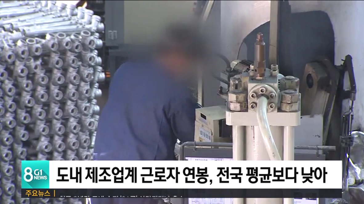 도내 제조업계 근로자들의 평균 연봉이 다른 시.도 근로자들보다 20% 가량 낮은 것으로 나타났습니다.