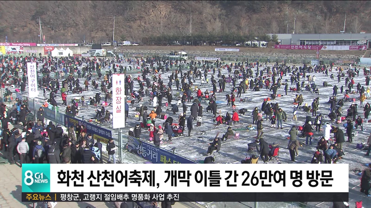 2019 산천어축제가 지난 5일 개막한 가운데, 개막 이틀 동안 26만명의 관광객이 축제장을 방문한 것으로 집계됐습니다.