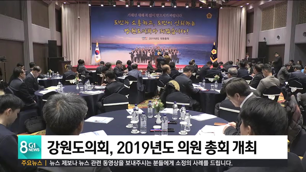 강원도의회가 한금석도의장과 도의원, 사무처 직원 등 100여명이 참석한 가운데 2019년도 의원 총회를 열었습니다.