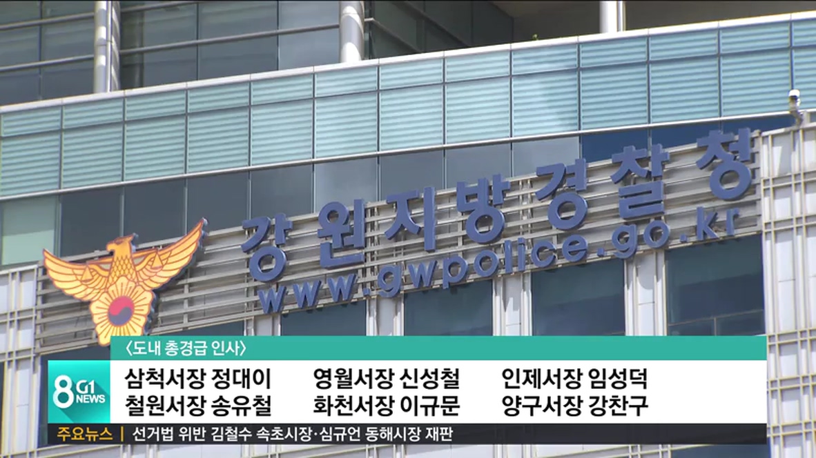 또, 강원청 보안과장에는 이화선 삼척서장이, 강원청 112종합상황실장에는 윤휘영 철원서장, 강원청 생활안전과장에는 최성환 서울 용산서장, 강원청 경비교통과장에는 한상갑 충남청 치안지도관이 각각 임명됐습니다.