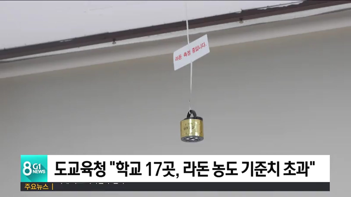 강원도교육청이 지난해 도내 전체 학교 930곳의 라돈 농도를 전수 조사한 결과, 17곳이 라돈 농도 기준치를 초과하는 것으로 나타났습니다.