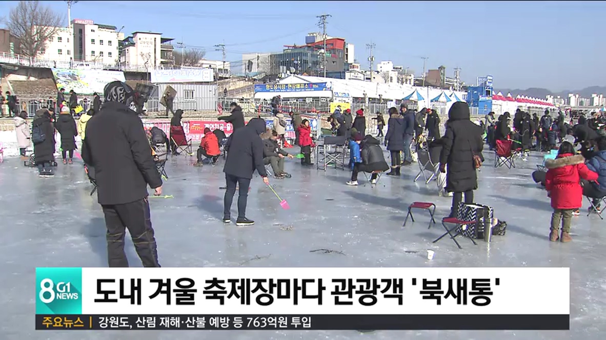 홍천강 꽁꽁축제와 화천 산천어축제장 등에는 전국 각지에서 온 관광객들의 발길이 이어지면서 성황을 이뤘습니다.