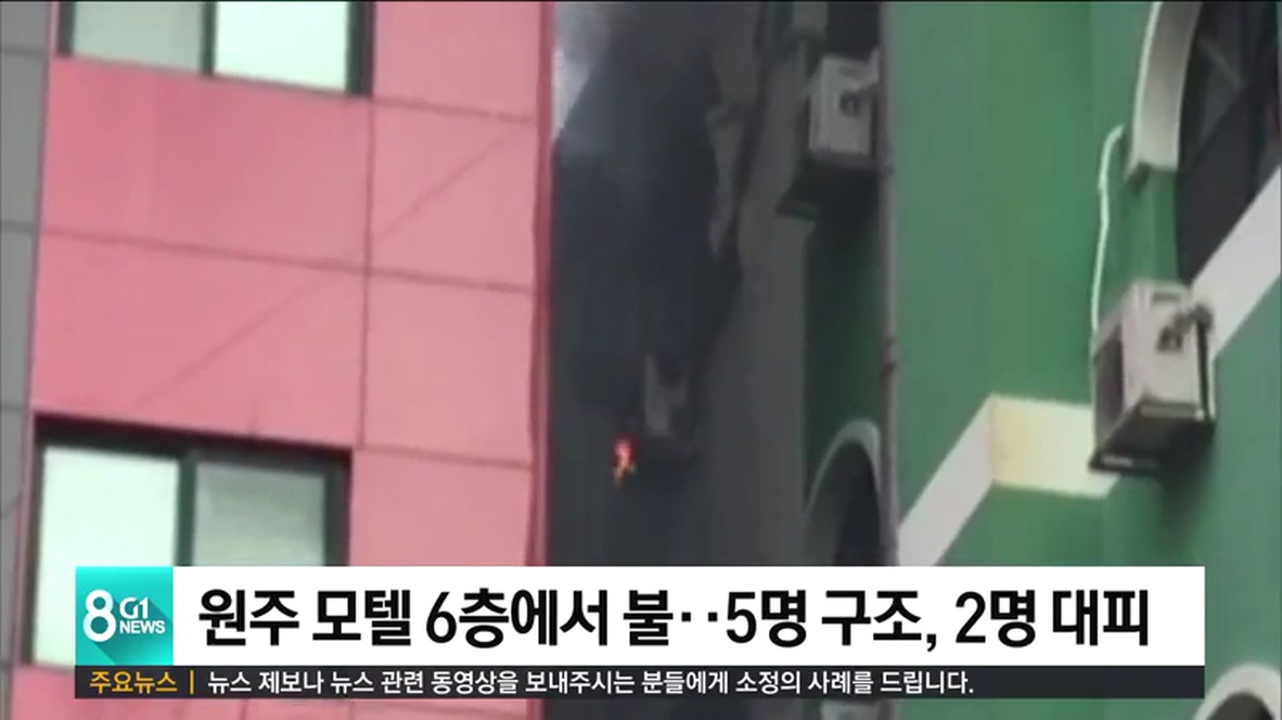 원주 모텔 6층에서 불.. 5명 구조, 2명 대피