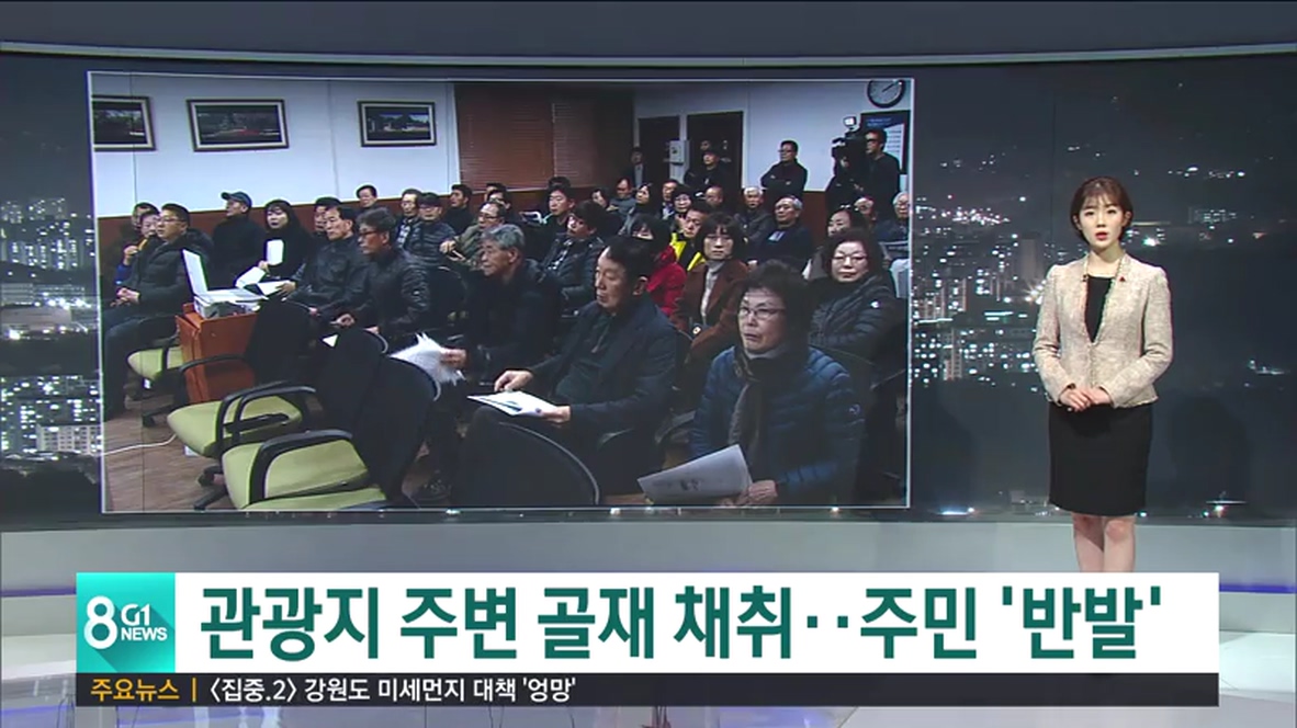 "하지만 주민들은 골재채취 사업이 진행되면 주변 관광지 이미지가 훼손되고, 환경오염이 유발될 가능성이 크다며 집단 반발하고 있습니다."