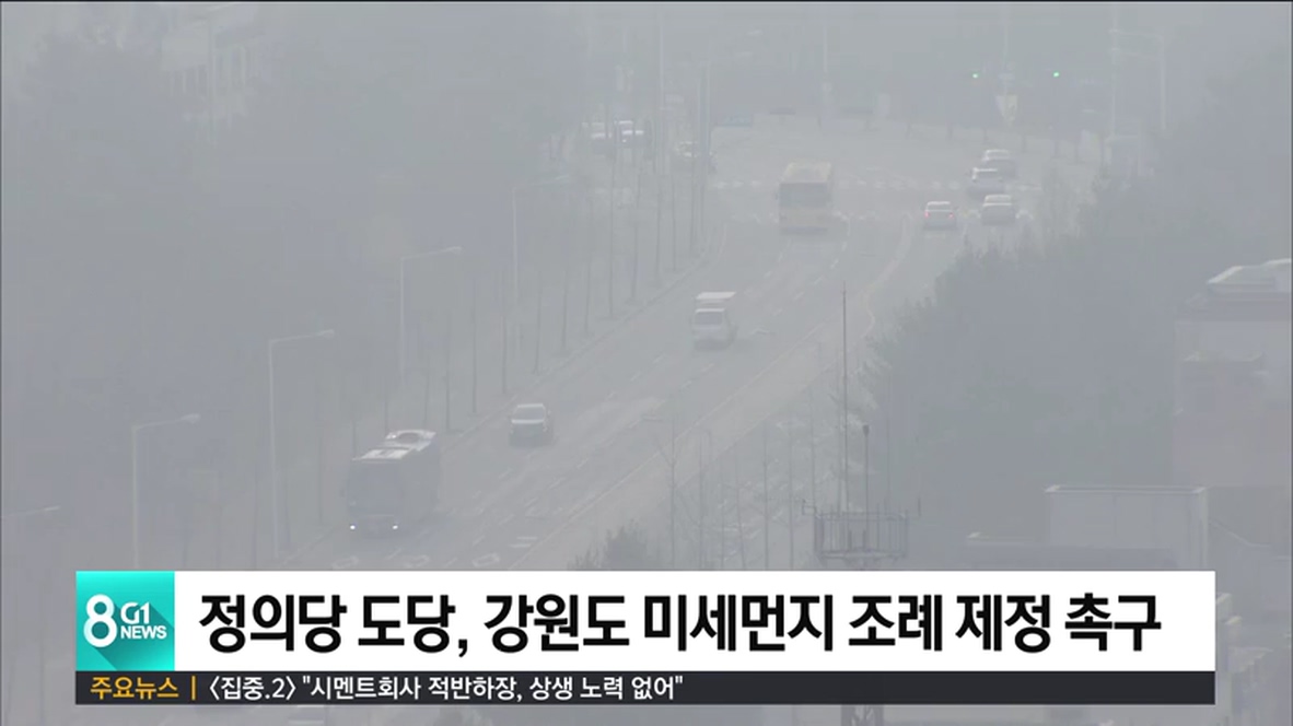 사상 최악의 미세먼지에도 불구하고, 강원도의 미세먼지 대책이 엉망이라는 어제 G1뉴스 보도와 관련해, 정의당이 강원도에 미세먼지 대책을 촉구하는 성명을 발표했습니다.