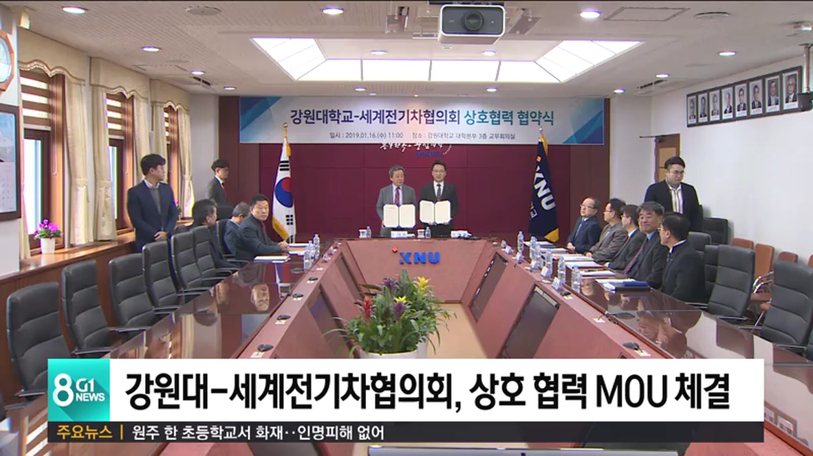 강원대와 세계전기차협의회가 상호 협력에 관한 양해 각서를 체결했습니다.
