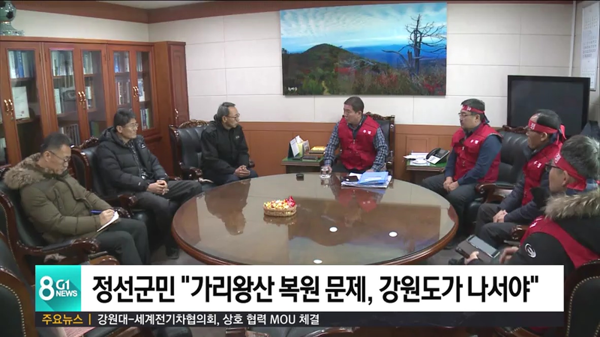 정선 가리왕산 복원 문제를 두고 정부와 정선군의 갈등이 계속되고 있는 가운데, 오늘(16일) 정선군을 방문한 김용국 강원도 산림국장에 대한 지역 주민들의 성토가 이어졌습니다.