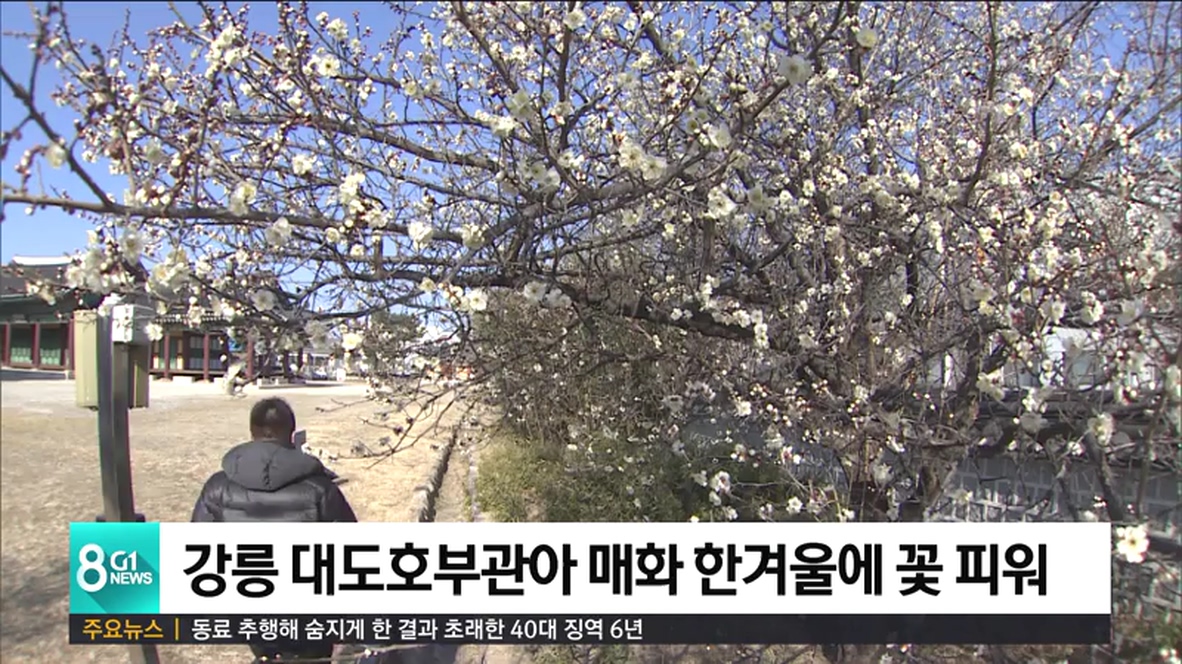 강릉 시내에 자리잡은 대도호부관아의 매화가 이른 꽃을 피워 시민들의 눈길을 모으고 있습니다.