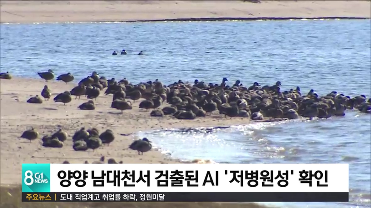 지난 20일 양양 남대천 일대에서 채취한 야생조류 분변에서 검출된 조류인플루엔자 AI 항원은 저병원성으로 확인됐습니다.