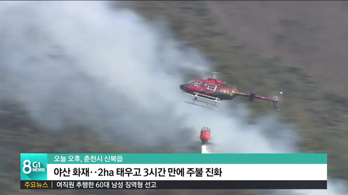 오늘 오후 2시 22분쯤 춘천시 신북읍 유포시의 한 야산 인근에서 불이 나 임야 2헥타르 가량을 태우고 3시간 만에 주불이 진화됐습니다.