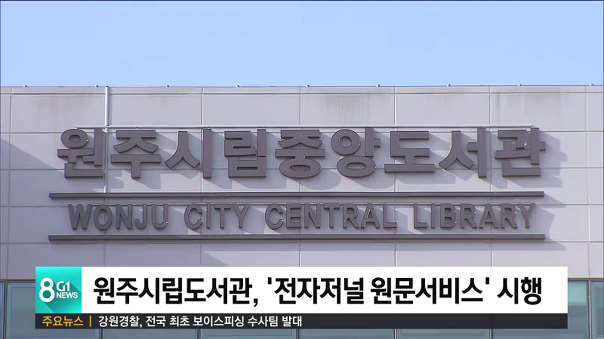원주시립도서관은 다음달부터 시민들을 대상으로 학술정보와 고급지식정보 등을 무료로 제공하는 '전자저널 원문 서비스'를 시행합니다.