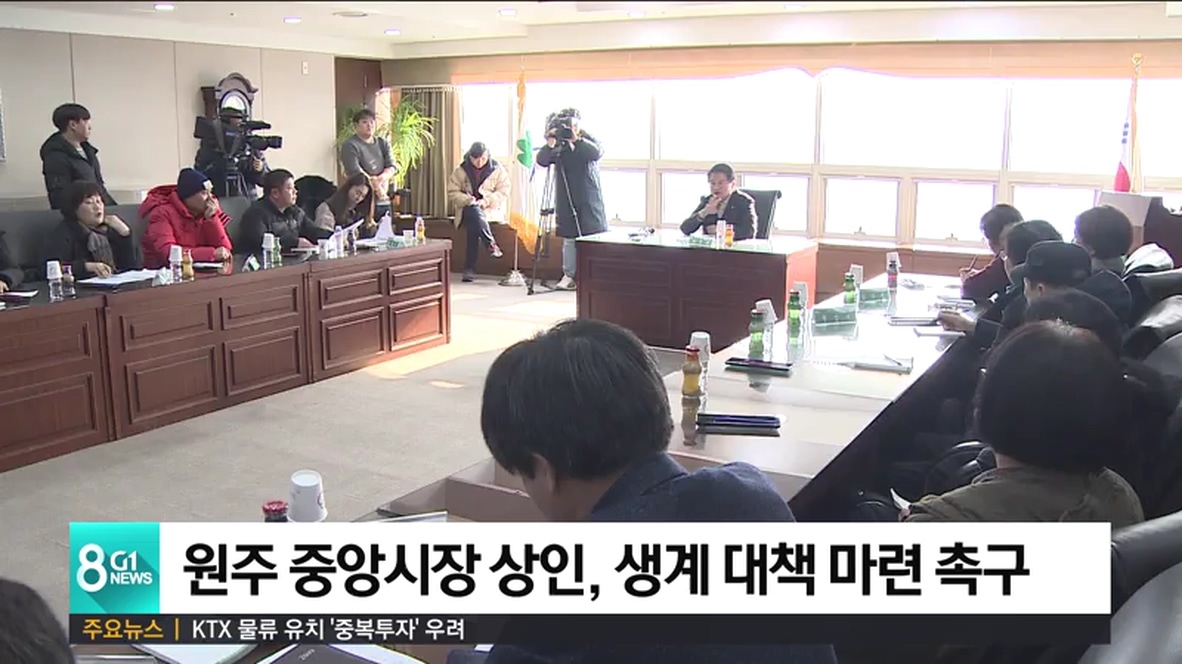 중앙시장 화재 피해자 생존권 확보를 위한 대책위원회는 오늘 원주시청에서 원창묵 시장과 간담회를 갖고, 중앙시장 인근 문화의 거리에 임시 노점 설치를 요구했습니다.