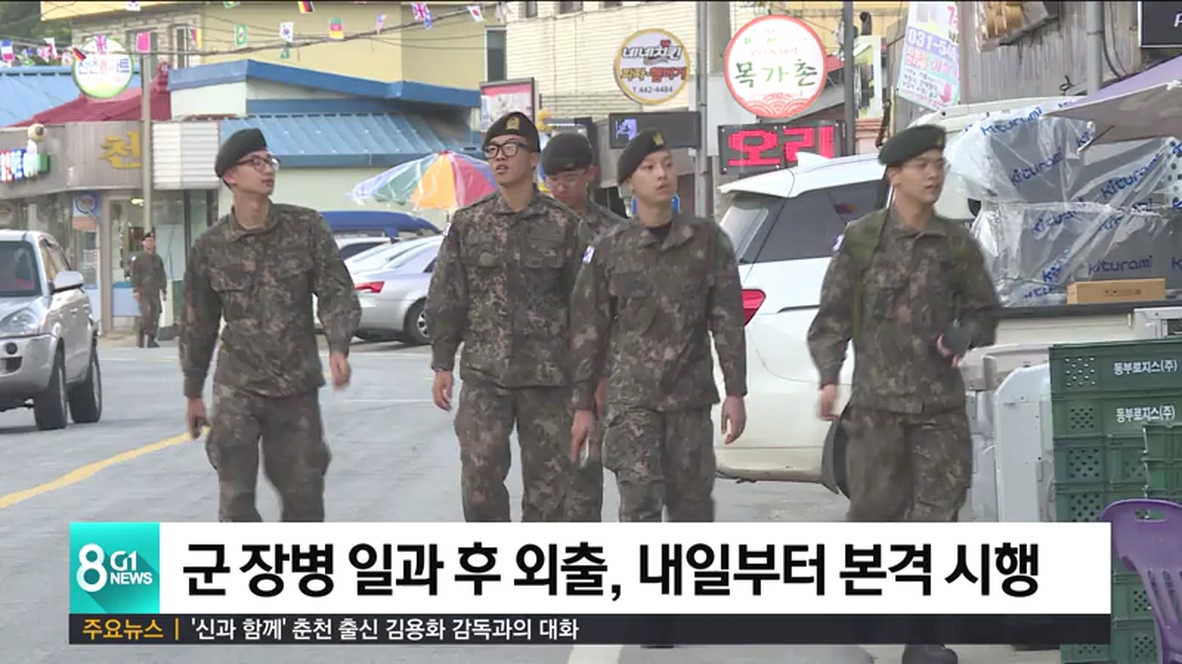 병사들의 평일 일과 이후 부대 밖 외출 제도가 내일(1일)부터 전면 시행돼, 접경지역 상경기 회복에 도움을 줄 전망입니다.