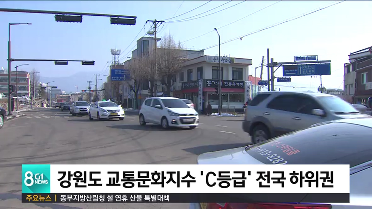 강원도의 교통문화지수가 전년보다는 조금 나아졌지만, 여전히 전국 하위권으로 나타났습니다.