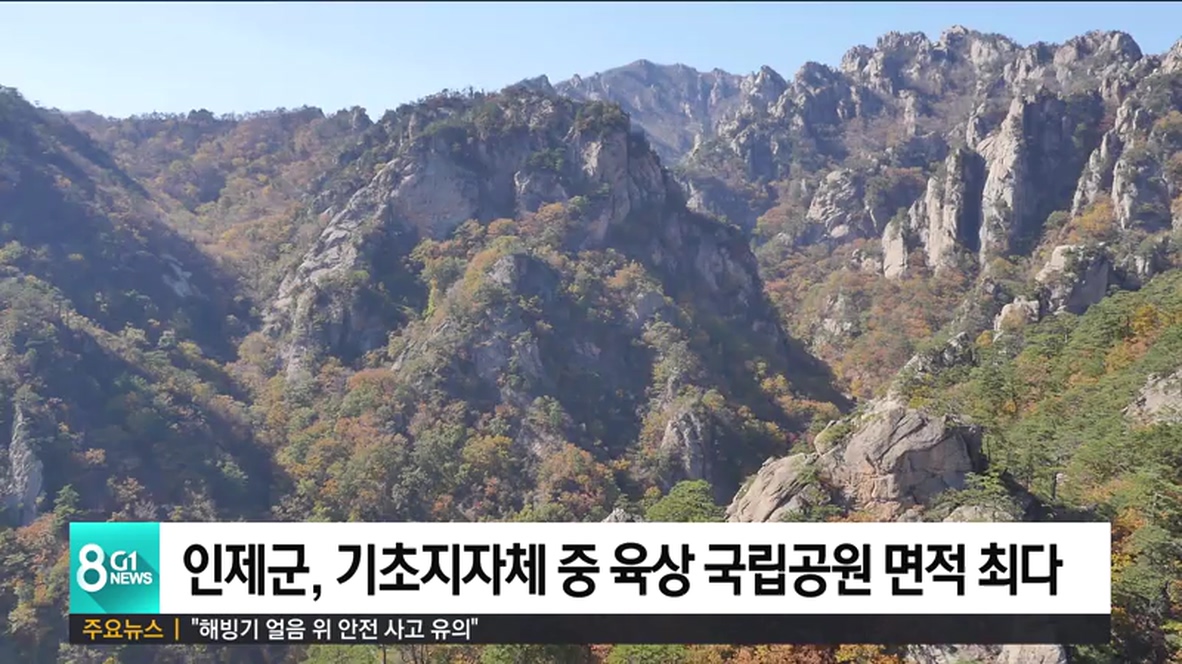 국내 기초자치단체 중 육상 국립공원의 면적이 가장 넓은 곳이 인제지역인 것으로 나타났습니다.