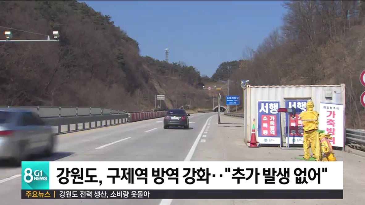 강원도는 구제역 유입 차단을 위해, 통제초소와 거점소독시설을 기존 6개에서 14개로 확대 운영하고 있고, 지금까지 추가 발생은 없는 것으로 확인됐다고 밝혔습니다.