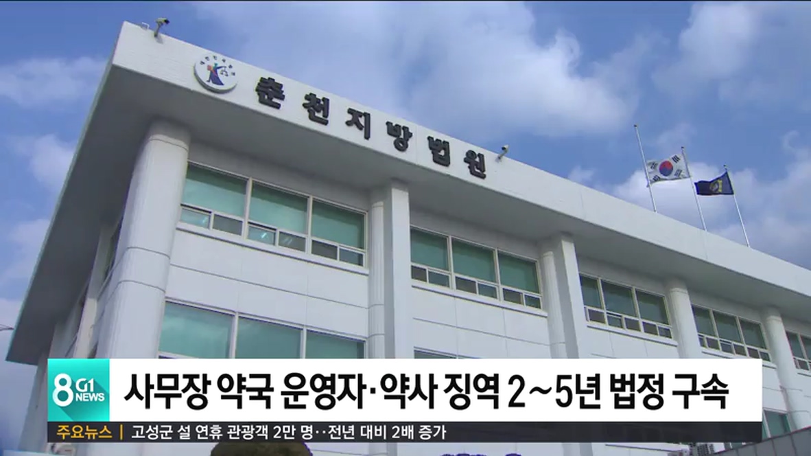 춘천지법 형사2부는 특정경제범죄가중처벌법 위반 등의 혐의로 기소된 의약품 도매업자 50살 A씨에게 징역 5년을, A씨가 고용한 월급 약사 40살 B씨와 54살 C씨에게 각각 장역 3년과 2년을 선고했다고 밝혔습니다.