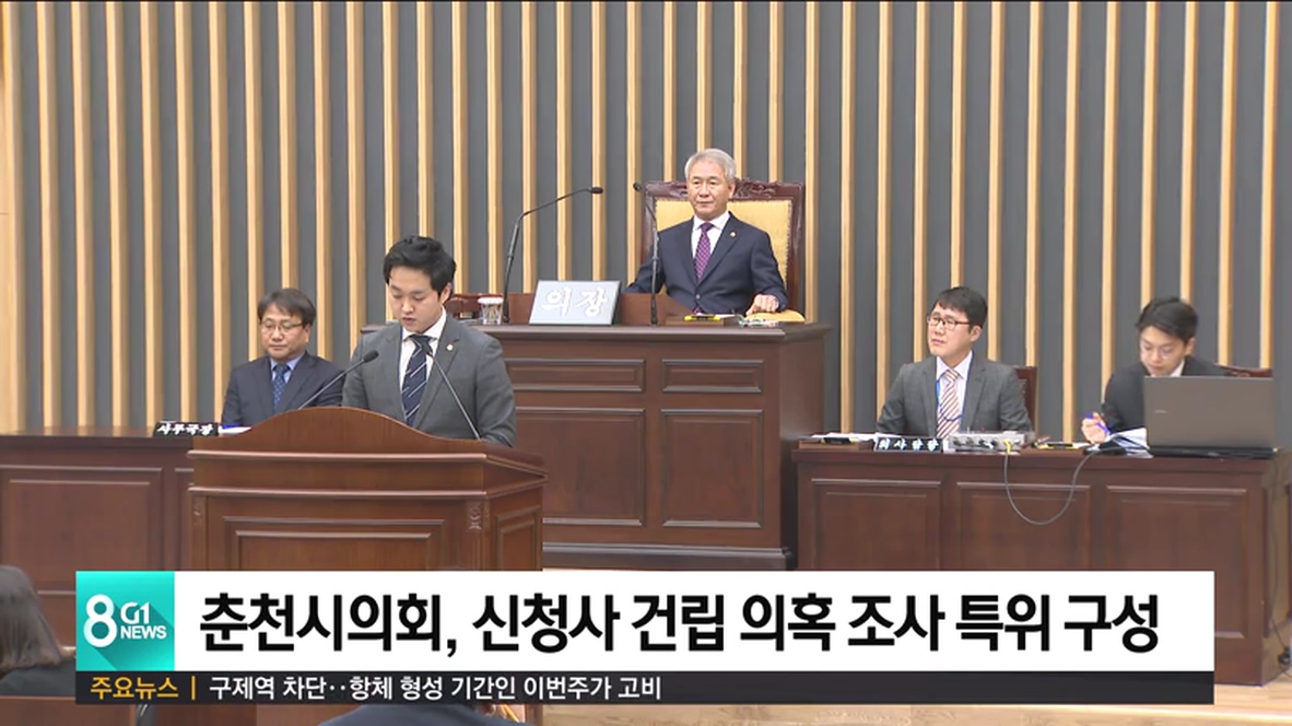 신청사 건물에서 물이 새고, 공간 부족으로 기존 임시청사를 별관으로 쓰는 등 춘천시 신청사 문제에 대한 G1뉴스 보도와 관련해, 춘천시의회가 그동안 제기된 의혹들을 조사하기 위한 특별위원회를 구성하기로 했습니다.