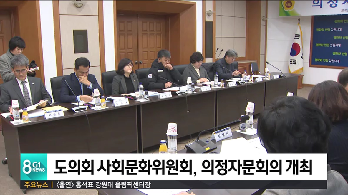 이번 회의에는 도의회 사회문화위원회 소속 의원 7명과 고창영 강원도문화도민운동협의회 사무총장, 변영혜 강원도사회복지사협회장 등 7명의 의정자문단이 참석해 도내 주요 현안에 대한 의견을 수렴하고 정책 대안을 제시했습니다.