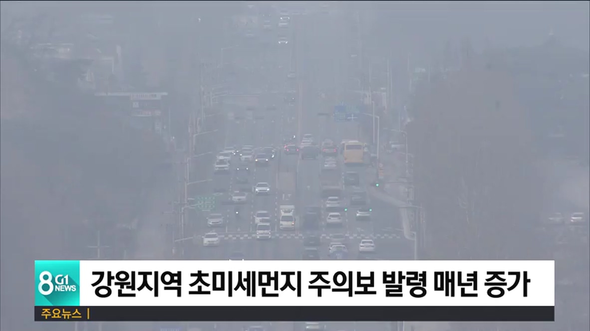 강원지역의 초미세먼지 주의보가 해마다 증가하고 있는 것으로 나타나 대책 마련이 시급합니다.