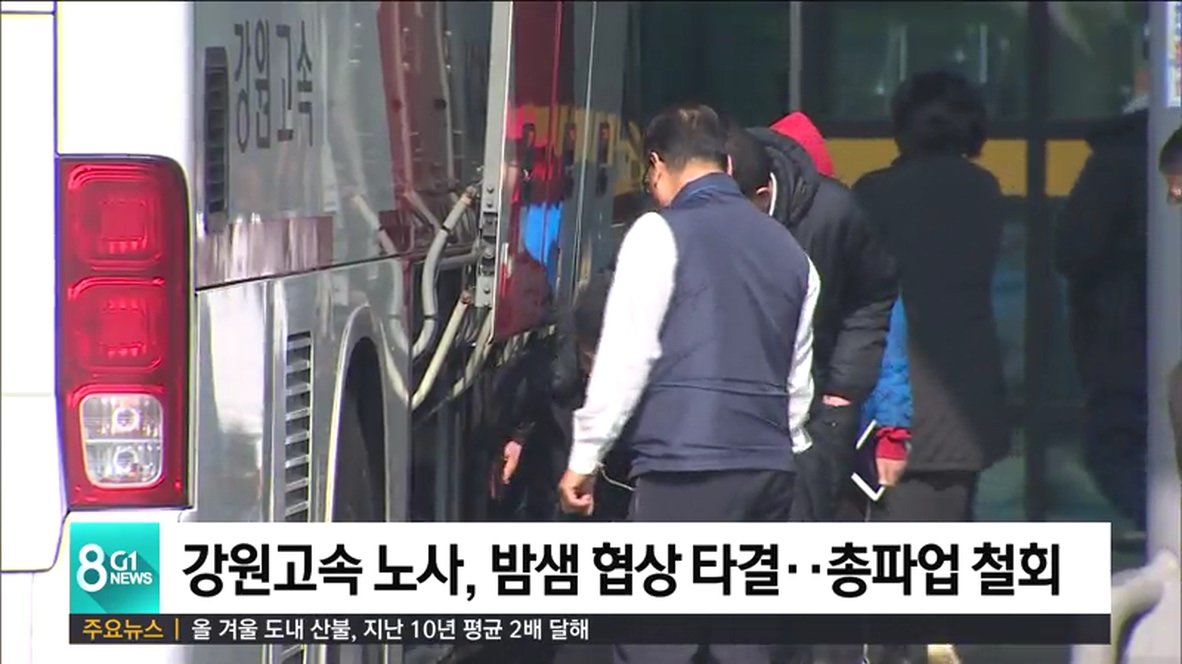 지난해 7월부터 노선버스업에 최대 주 68시간 근로가 적용됨에 따라, 강원고속 노사는 초과근무시간 단축 등에 따른 임금 협상을 벌여 왔습니다.